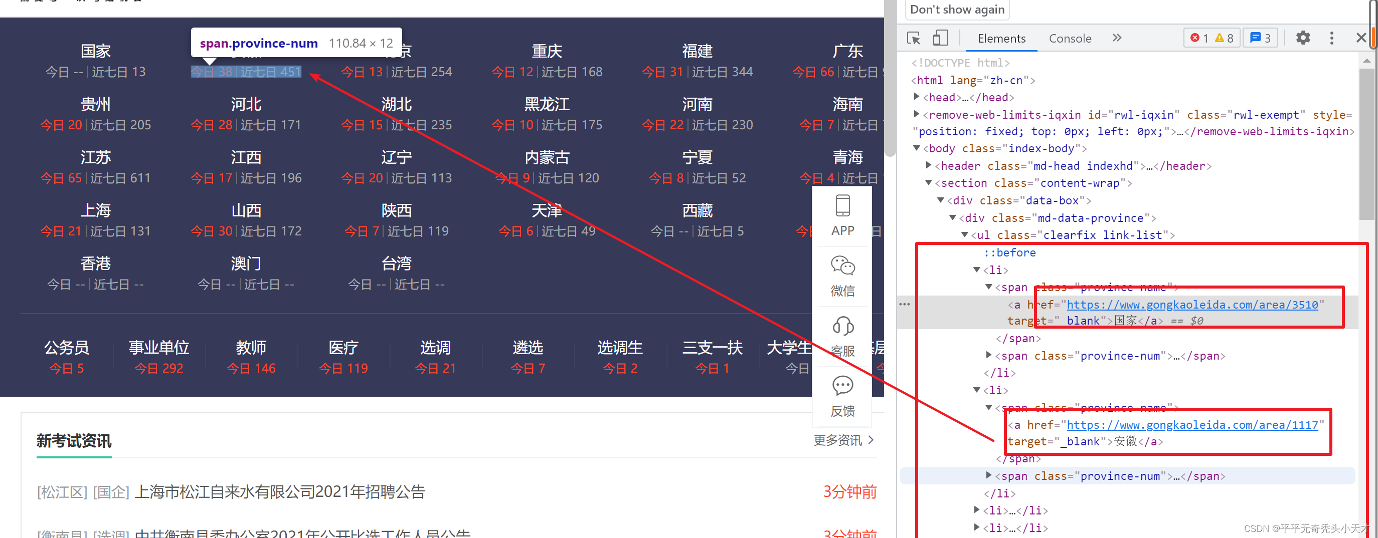 此次爬虫项目的任务目标为爬取公考雷达网站首页顶部链接中的各个职位概括信息以及地点内容。