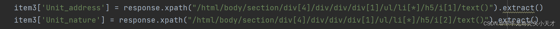??????? ????#其他错误 ??????? elif 'exception' in response.url: ??????????? print('Sorry exception') ? ??????????item0['key'] = {'key':response.meta,'_str':'EXCEPTION','alias':''} ??????????? yield item0 ??????? else: ????? ??????print('Request successfully') ? ??????# 定义每个页码的规则,用于提取链接 ??????? #直接进行链接提取出现重复,使用rule匹配规则 ??????? link2 = LinkExtractor(allow=r'page=\d+') ??????? rules = ( ??????????? # 实例化了一个规则解析器对象 ??????????? #follow实际上就为数据的去重 ??????????? Rule(link2, follow=True), ??????? ) ??????? links2 = link2.extract_links(response) ??????? if link2 != []: ??????????? for link in links2: ??????????????? print(link.url) ??????????????? self.url2.append(link.url) ??????????????? # 定义item2 ??????????????? item2 = ZhiweiurlItem() ??????????????? item2['del_url'] = link.url ??????????????? yield item2 ??????????????? # 传入下下级爬取信息 ??????????????? yield scrapy.Request(url=item2['del_url'], callback=self.dell_parse) ??????????????? # 第三层内容爬取(职位详细介绍) ??????? else: ??????????? link3= LinkExtractor(restrict_xpaths='/html/body/section/div[4]/div/div/div[1]/ul/li[*]/h5/a') ??????????? links3 = link3.extract_links(response) ??????????? item3 = ZhiweiItem() ??????????? item3['details'] = response.url ??????????? item3['Unit_address']= response.xpath("/html/body/section/div[4]/div/div/div[1]/ul/li[*]/h5/i[1]/text()").extract() ??????????? item3['Unit_nature']= response.xpath("/html/body/section/div[4]/div/div/div[1]/ul/li[*]/h5/i[2]/text()").extract() ??????????? yield item3 ??????????? for link in links3: ??????????????? item3 = ZhiweiItem() ??????????????? self.url3.append(link.url) ??????????????? item3['details'] = link.text ??????????????? yield item3