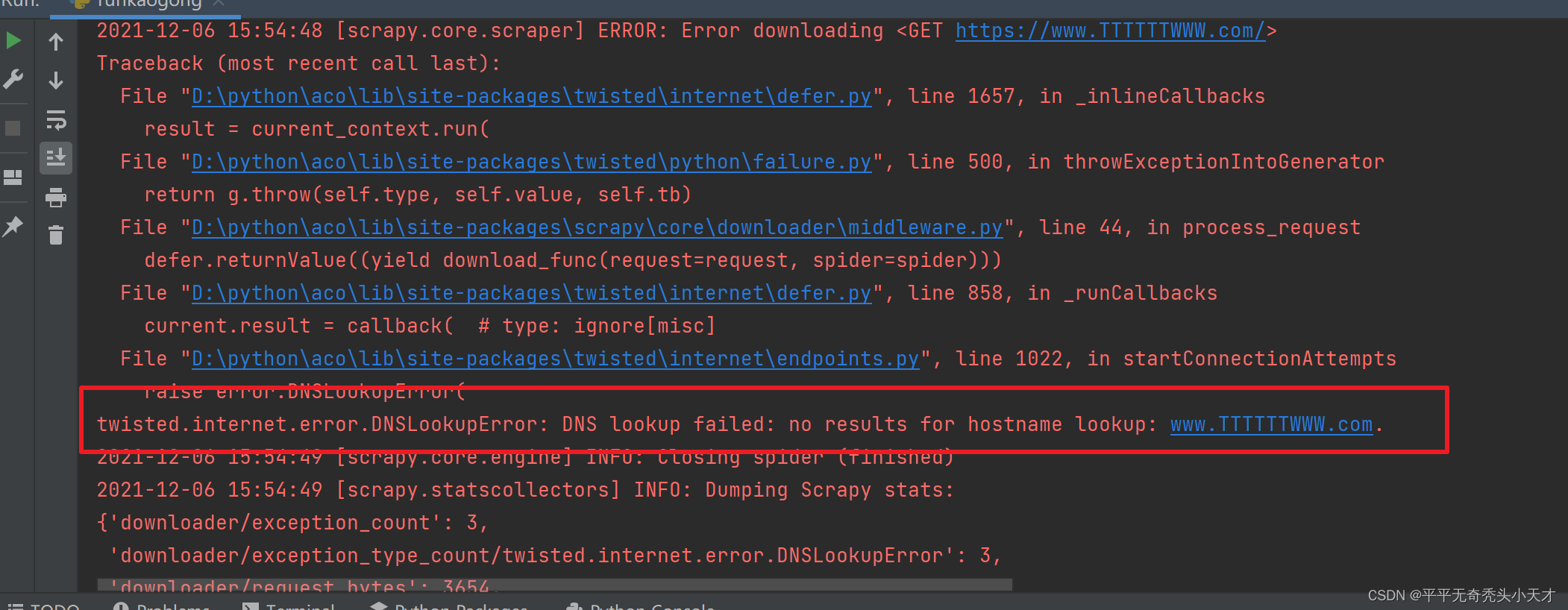 [Scrapy使用技巧] 如何在scrapy中捕获并处理各种异常_Rei的博客-CSDN博客_scrapy异常处理