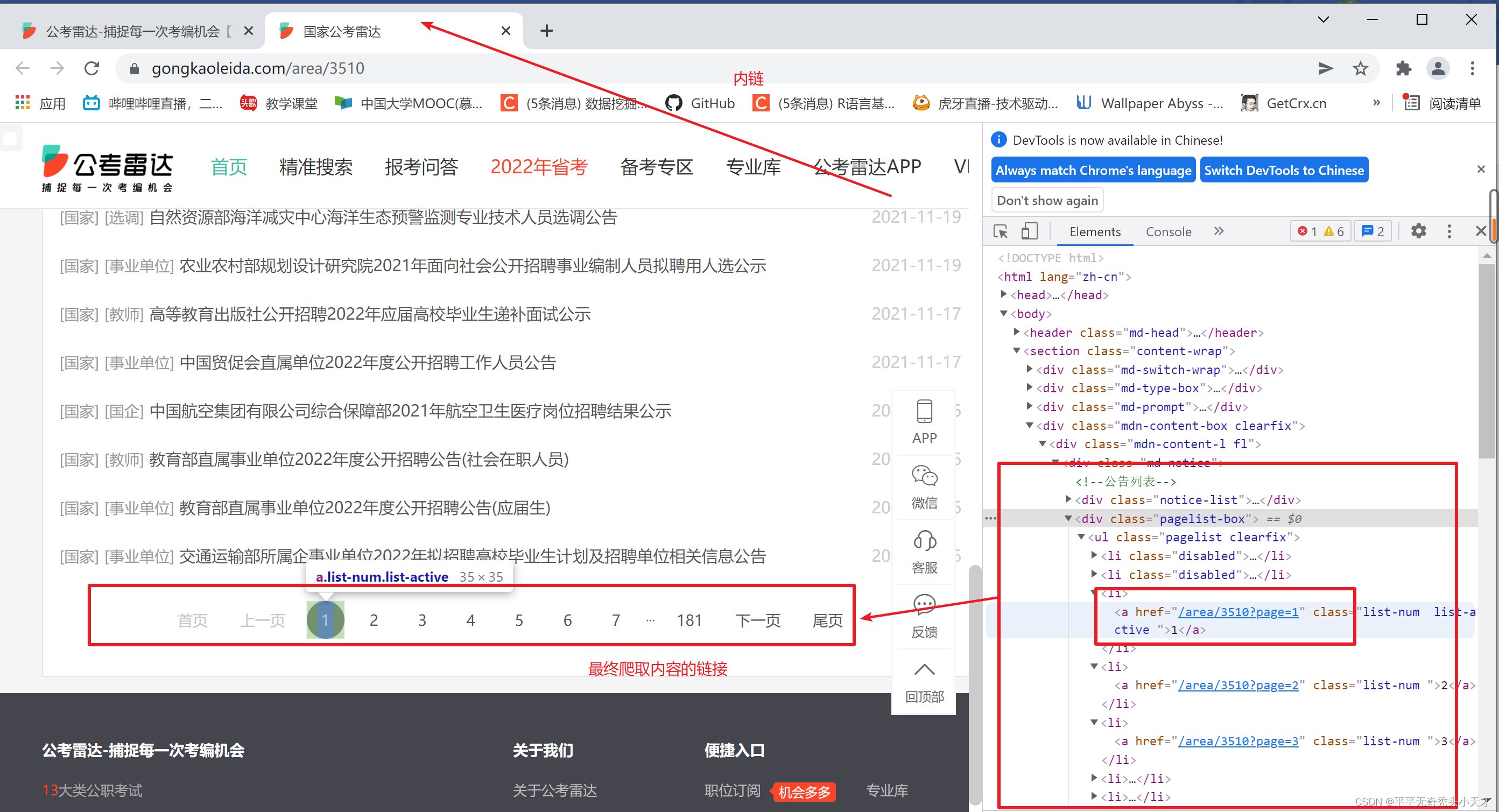 此次爬取分为了三层递进爬取,在外链中获取到的内链中获取最终爬取内容页面的链接信息。