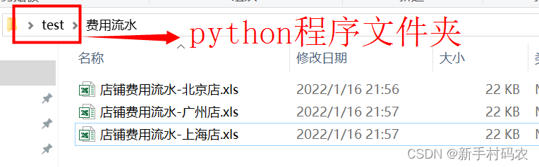 现有多张xls表,放入python程序所在的文件夹,我的是test