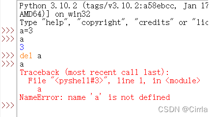 TIps:不同于c语言,不需要int a=3,直接写a=3