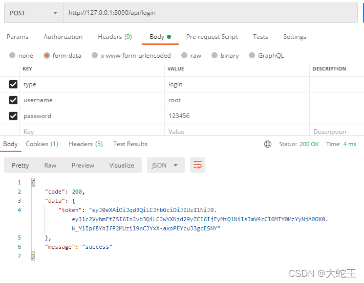 # 验证账号密码,正确则返回token,用于后续接口权限验证