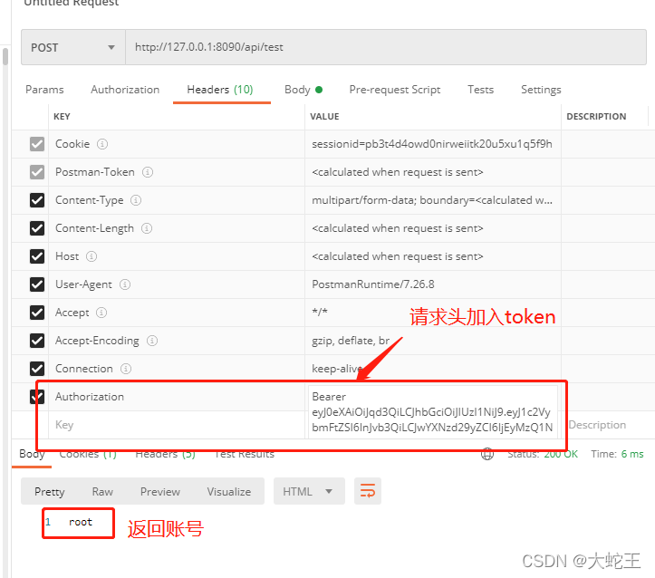 接下来,我们把token令牌添加到请求头中,添加参数:Authorization