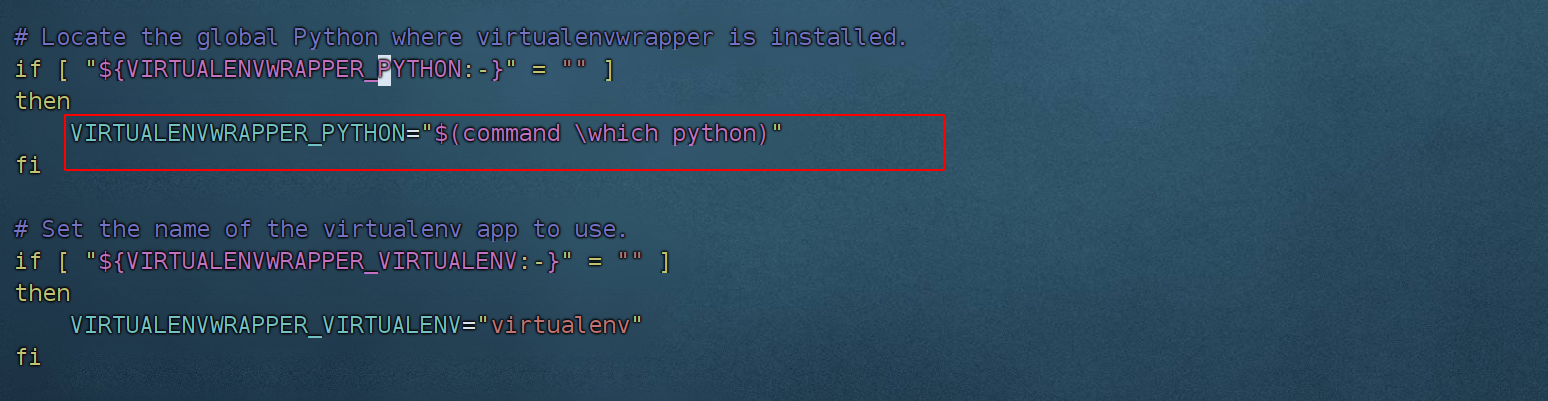 export VIRTUALENVWRAPPER_VIRTUALENV=/usr/local/python3/bin/virtualenv # virtualenv虚拟环境路径,可不写