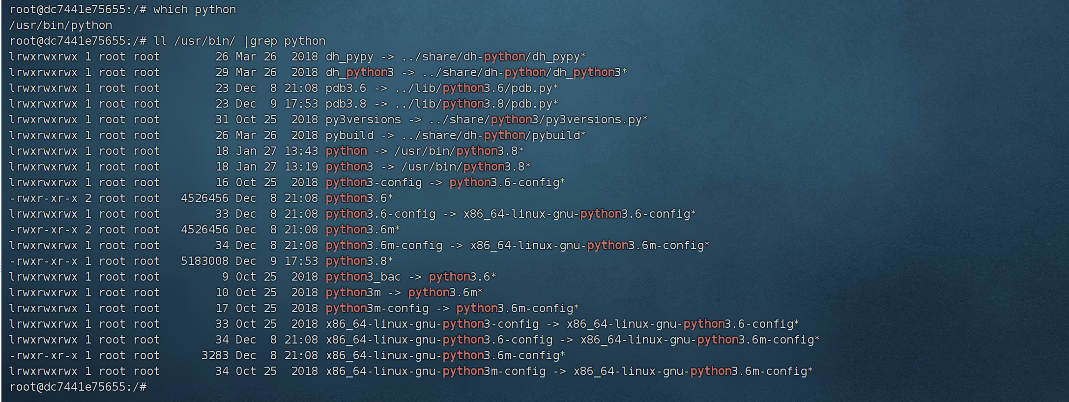 使用软链接 ln -s 目标路径 软链接路径 例如: ln -s /usr/bin/python /usr/bin/python3.8 就可以在终端,任意路径下,输入python就可以运行python3.8了