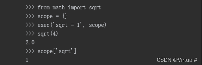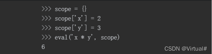 添加第二个参数——字典,用作代码字符串的命名空间: