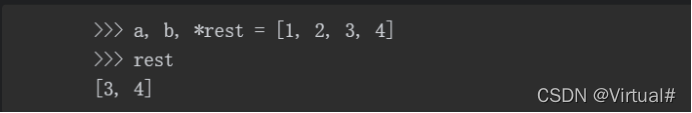 可使用星号运算符(*)来收集多余的值(作为一个列表),这样无需确保值和变量的个数相同