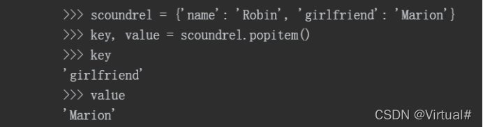 假设要从字典中随便获取(或删除)一个键-值对,可使用方法popitem