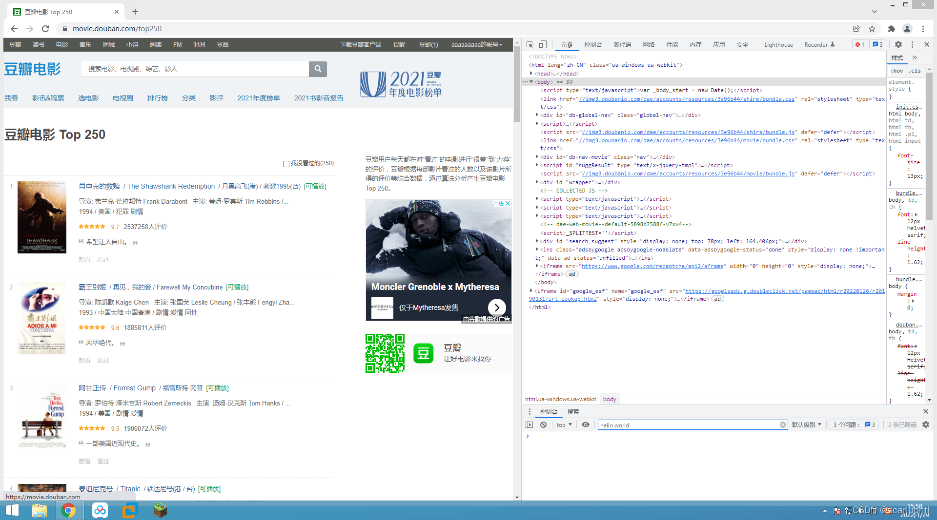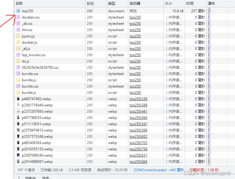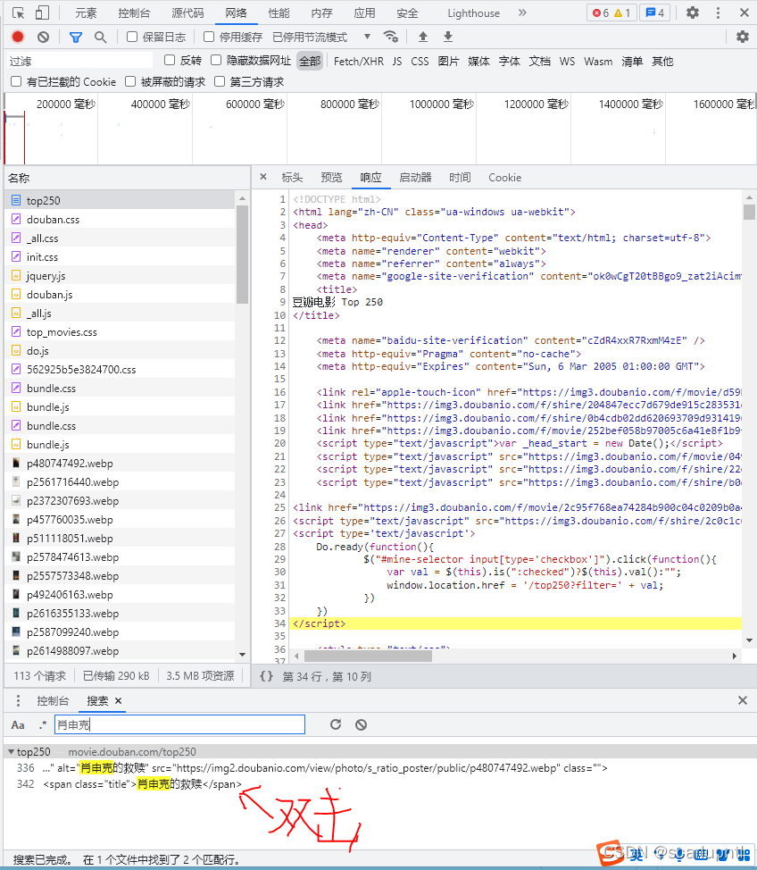 2.打开浏览器,进入豆瓣页面(movie.douban.com/top250),按下f12,会出现以下界面: