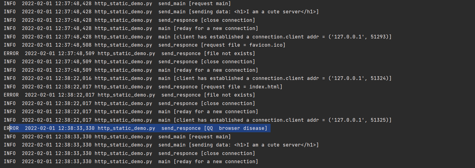 logger.info(f'client has established a connection.client addr = {client_addr}')