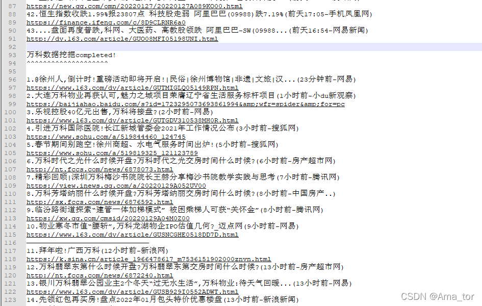 file1.write(href[i] + '\n') # '\n'表示换行 ,这一行写入新闻链接