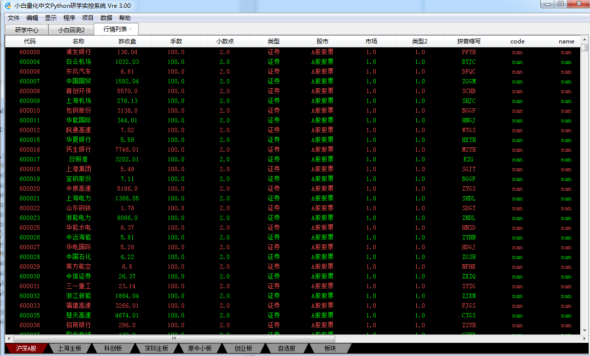 执行这个插件后,再输入字母i,就没有出现弹出提示框。  上面是简单插件演示。 我们根据此原理设计了2个插件程序[小白回测2]和[行情列表]插件程序。  我们的新插件程序使用自动识别技术。如果在[小白量化中文Python研学实控系统]中运行是上面的图形,同样的程序在其他IDE中,插件程序运行结果如下。  为什么会如此?如何实现的,下篇再将。
