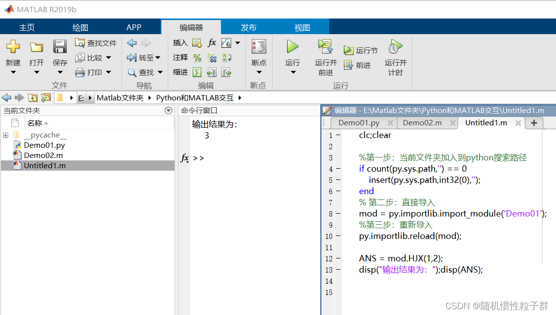 首先要在MATLAB同一文件夹中创建一个py文件,文件名为:Demo01.py
