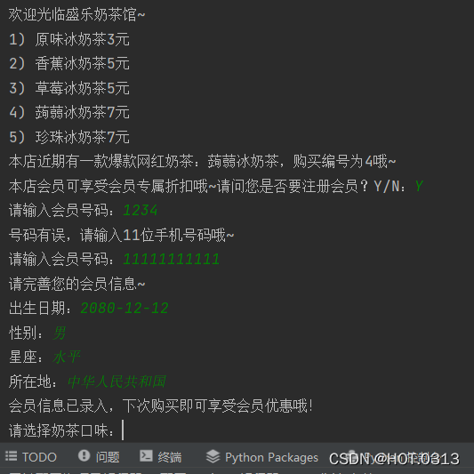 print('根据其他顾客的购买情况,向您推荐奶茶口味:'+str(temp4)+') '+str(menu[temp4][0]))