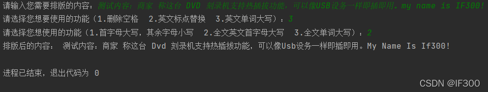 choice3 = int(input("请选择您想使用的功能(1.首字母大写,其余字母小写 2.全文英文首字母大写 3.全文单词大写):"))