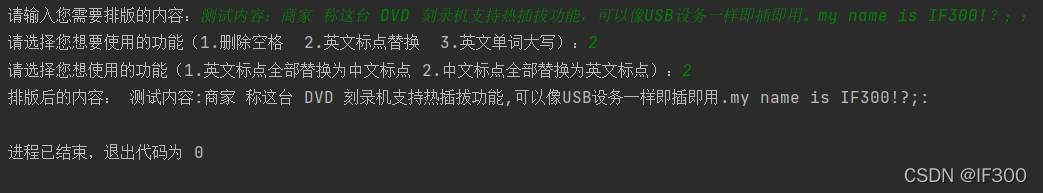 choice = int(input("请选择您想要使用的功能(1.删除空格 2.英文标点替换 3.英文单词大写):"))