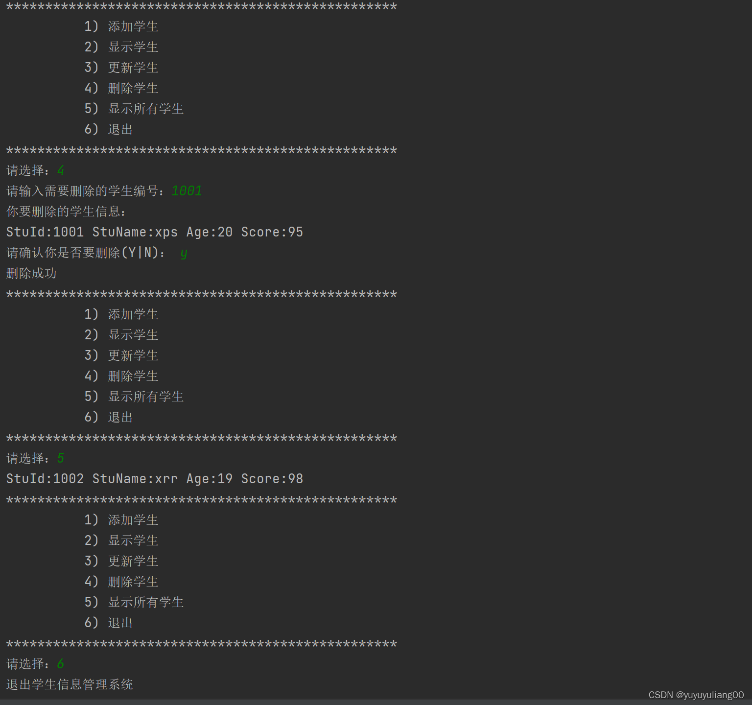 # # 测试删除学生