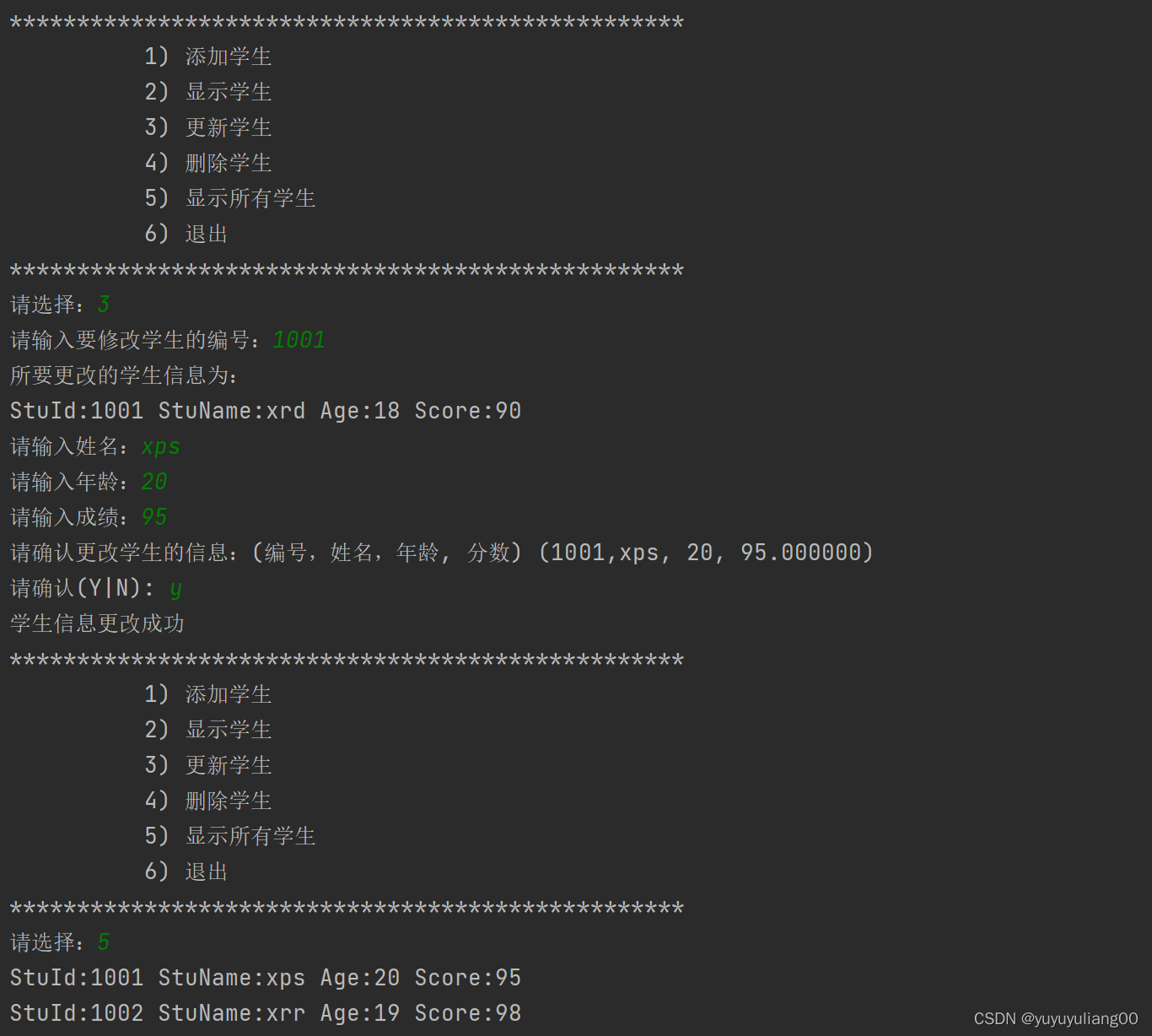 print("学生信息更改成功")