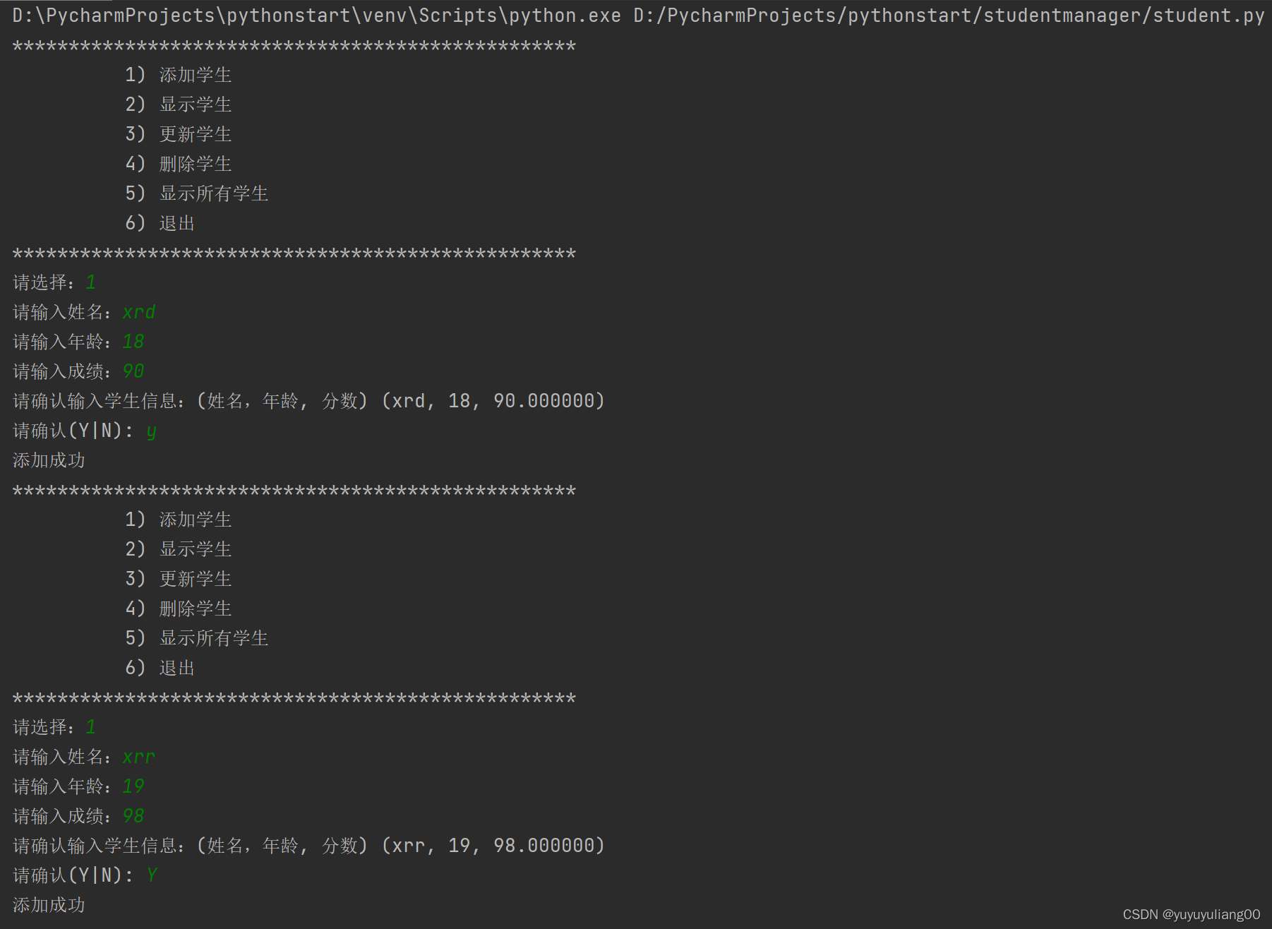 # # 测试添加学生