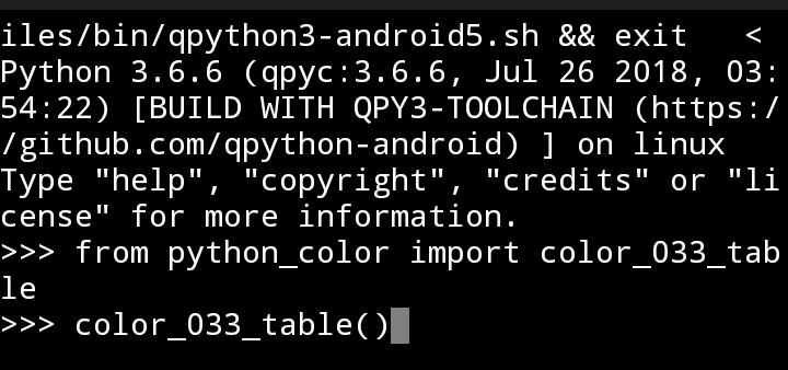 ['__builtins__', '__cached__', '__doc__', '__file__', '__loader__', '__name__', '__package__', '__spec__', 'color', 'color7', 'color_033_table', 'colors_table', 'error', 'k']