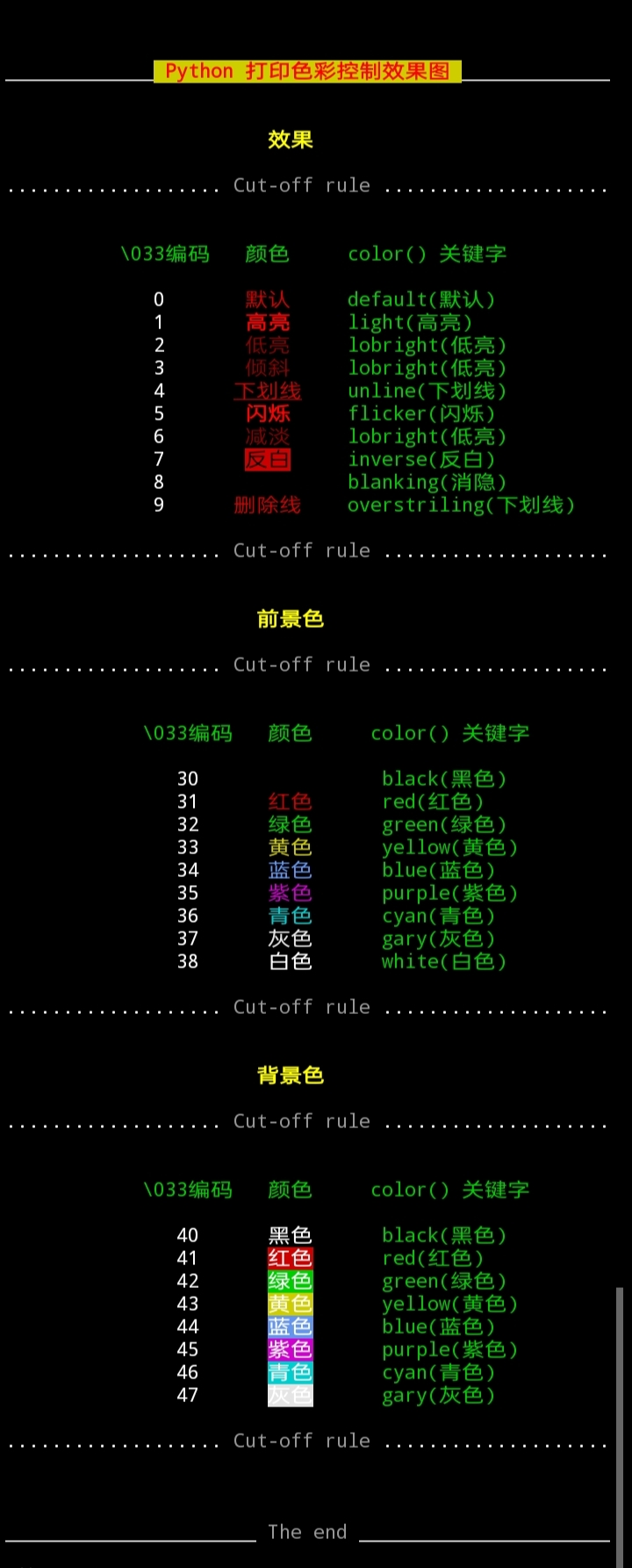 color_s = ' \033[32m\\033色彩控制打印效果图\033[0m '