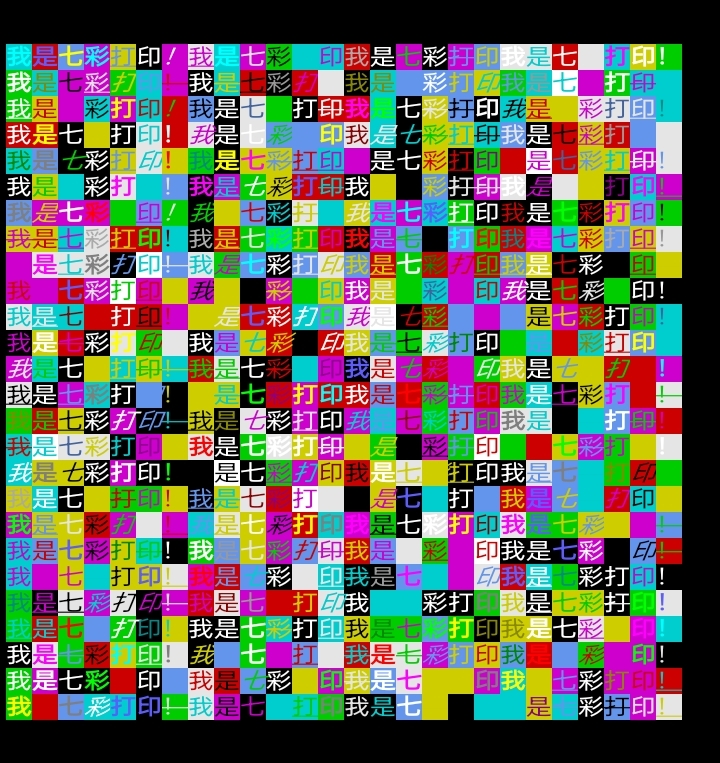 ??更有趣的是,我在优化 color() 的过程中,有了做一个随机前景色背景和打印效果的七彩打印模块 color7() 。如果调用时传入背景控制参数 0 ,则背景色保持“灰色”。