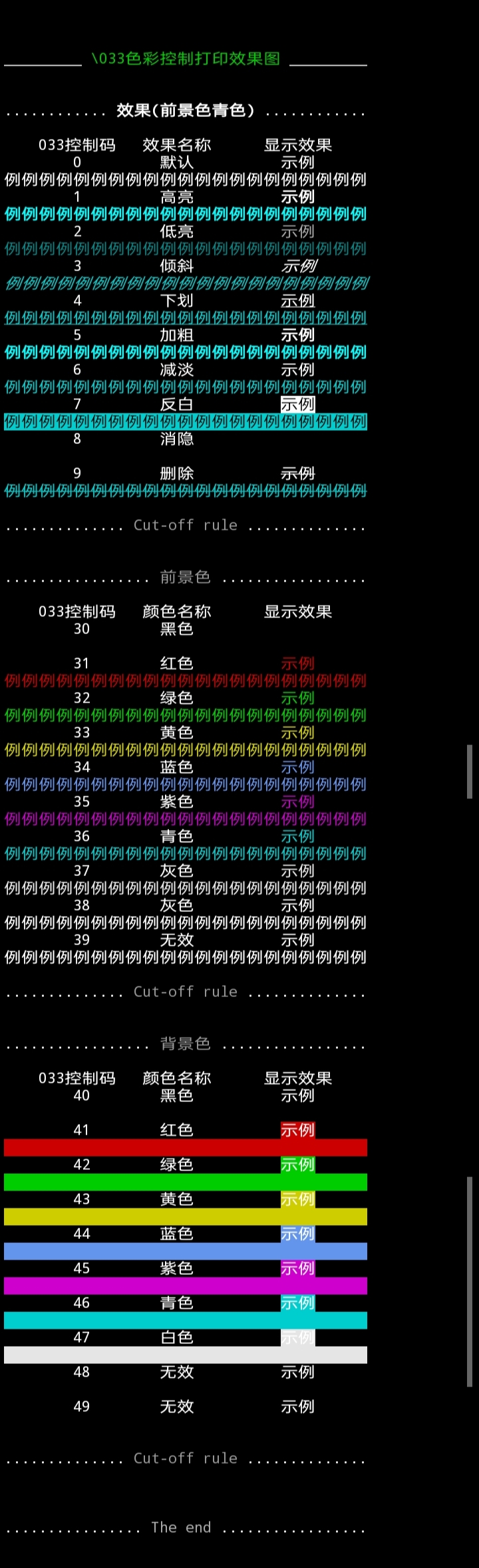 '''用 033 控制码打印 \033 控制色彩打印效果图'''