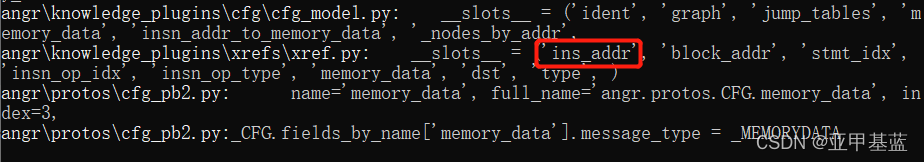 ?可以看到xref类下面有一个 ins_addr 属性。把第385行的 dr.insn_addr 改成 dr.ins_addr,错误解决。