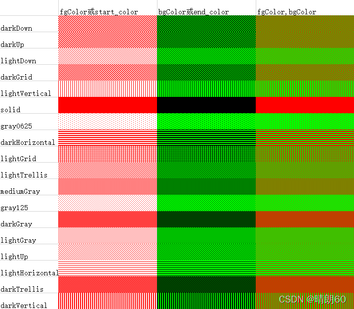 在不同的patternType参数下,分别用只加fgColor参数,只加bgColor参数,两个都加测试