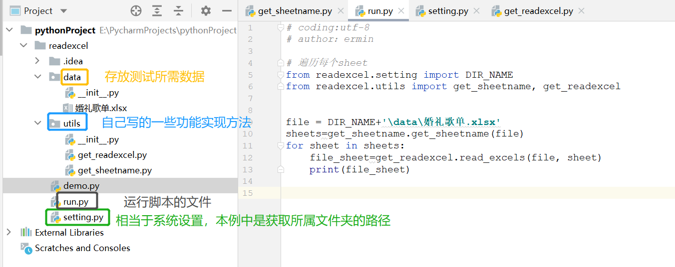 1. 获取excel文件路径,我们这里指的是相对路径,更具有灵活性 <setting.py>