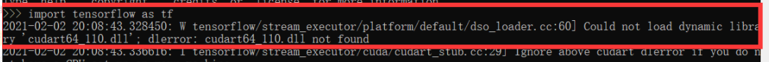 6.其他报错6.1报错如下:Could not load dynamic library ‘cudart64_110.dll‘; dlerror: cudart64_110.dll not found