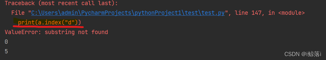 print(a.index("d")) #如果字符串中查到没有,则会报错