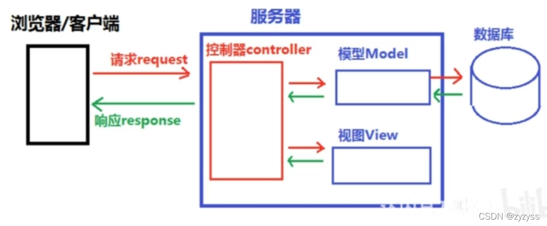 M模型层(Model),主要用于对数据库层的封装 V视图层(View)用于向用户展示结果(WHAT+HQW) C?控制(Controller,用于处理请求、获取数据、返回结果(重要)