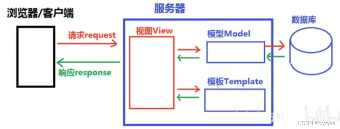 MTV?代表?Model-Template-View(模型-模板-视图)?模式。 M?模型层(Model)?负责与数据库交互 T模板层(Template)负责呈现内容到浏览器(HOW) V视图层(View)是核心,负责接收请求、获取数据、返回结果(WHAT)