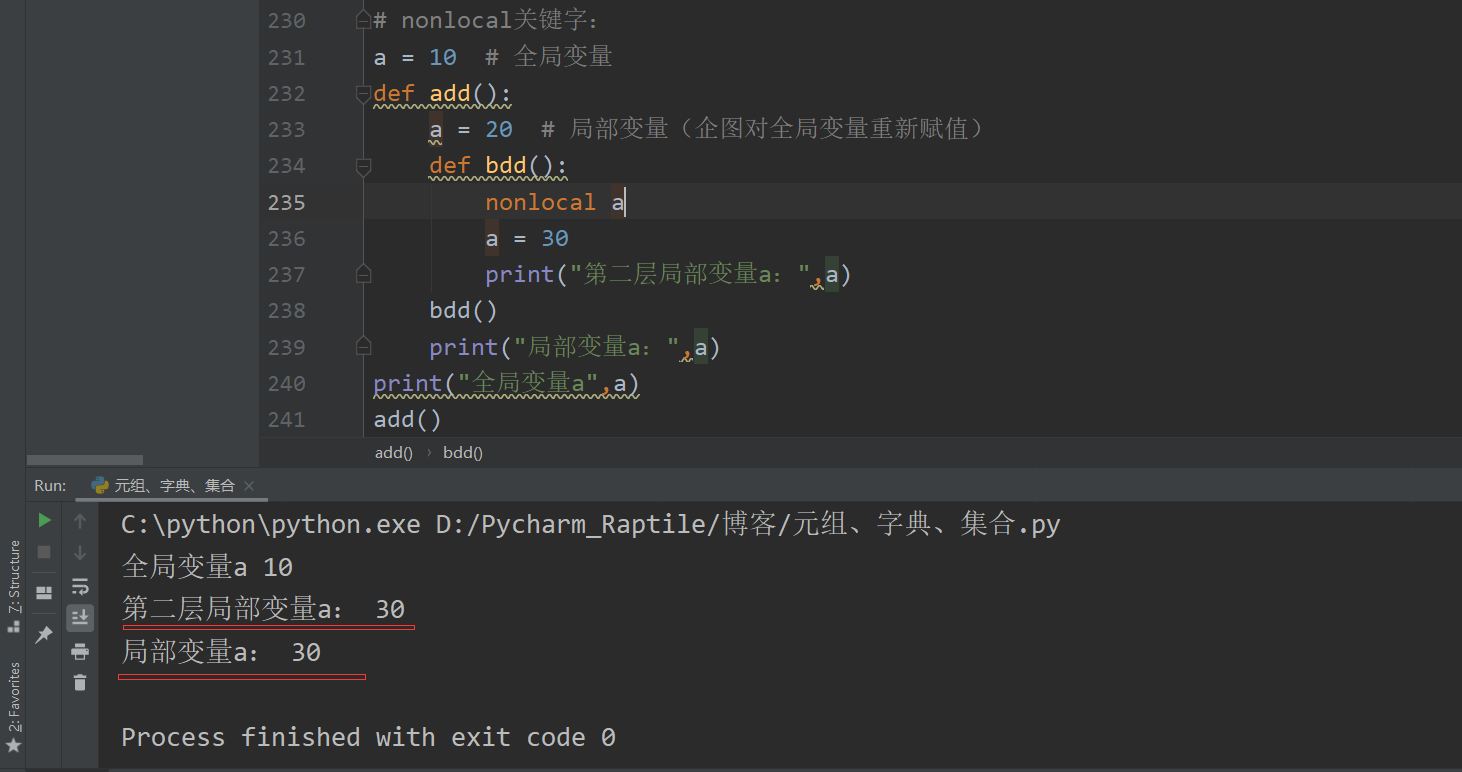 ??2.这是使用过nonlocal关键字的:直接修改了上一级的局部变量。