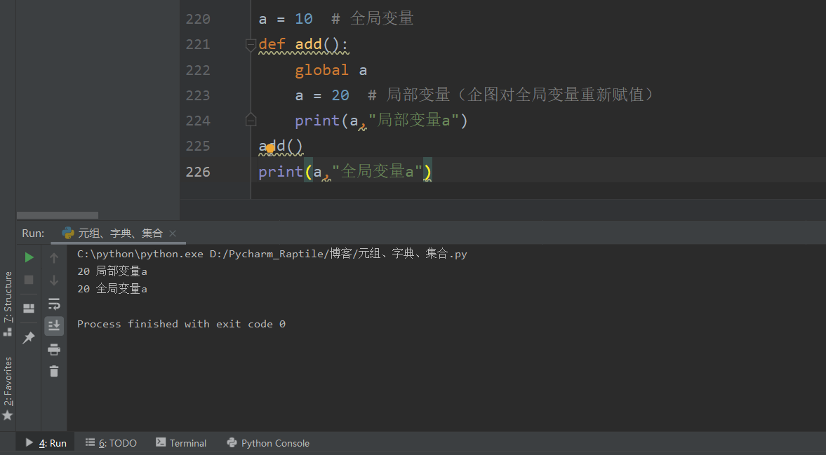 如果我们想在函数内部对全局变量进行赋值,就要用到一个关键字:global