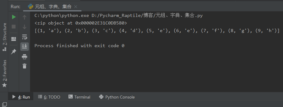 print(zip_1) # 运行结果:<zip object at 0x000002071F1EB5C0>