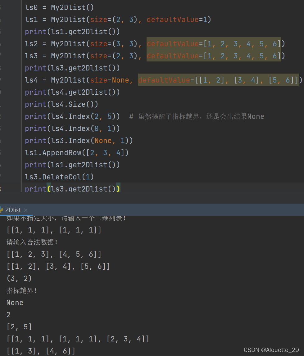 类中的方法有is2Dlist,get2Dlist,Size,Index,AppendRow,AppendCol,DeleteRow,DeleteCol