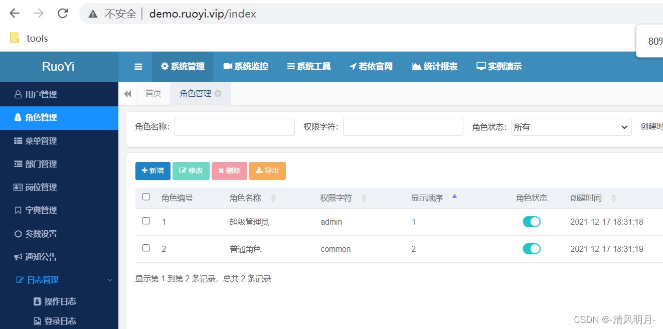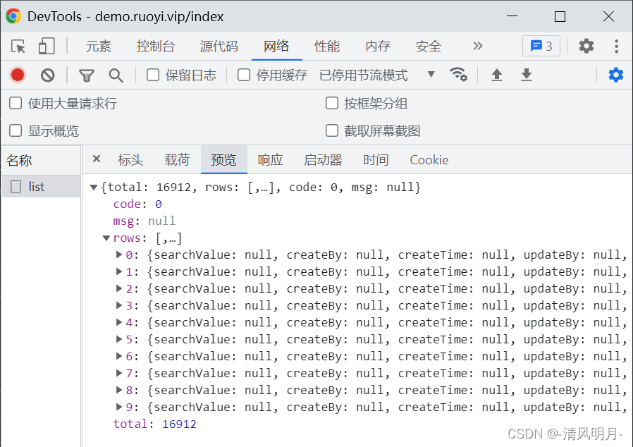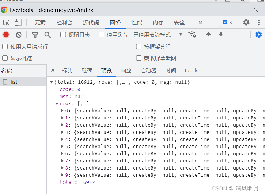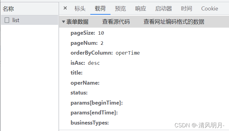 ?根据前面的分析,查询分页数据时,会请求http://demo.ruoyi.vip/monitor/operlog/list这个url,因此可以构建下面的请求参数: