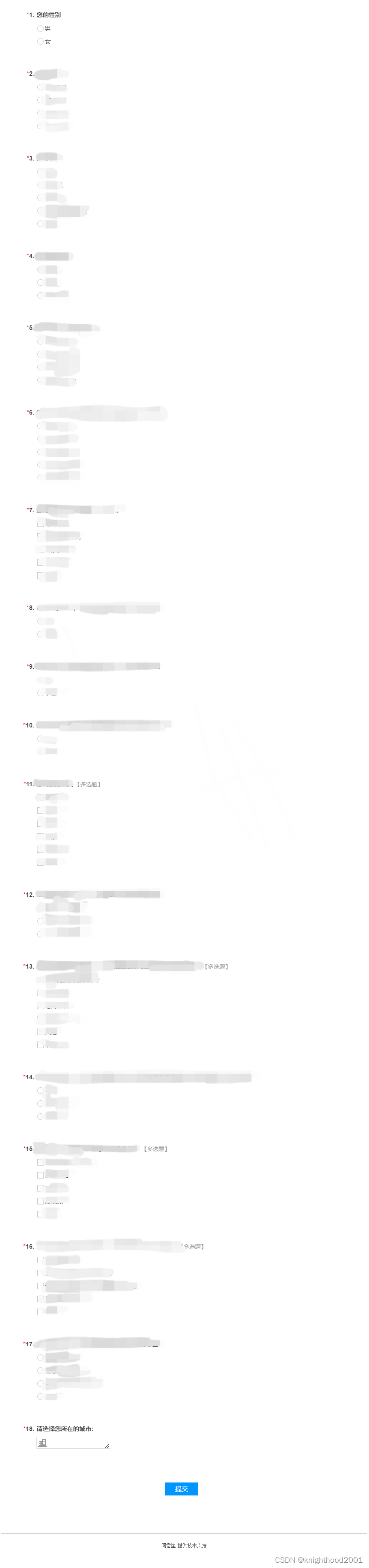 由于问卷涉及一些内容,不便公开,因此我就将问卷内容马赛克了(如下图),网址也不公布了。大家了解一下题目的类型即可