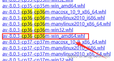 ????????我这边直接在镜像网站查到最新的支持python3.6的pyav为8.0.3,下载安装: