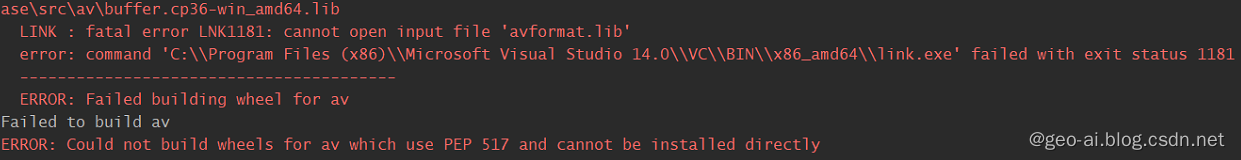 ????????ERROR: Failed building wheel for av ????????Failed to build av ????????ERROR: Could not build wheels for av which use PEP 517 and cannot be installed directly: