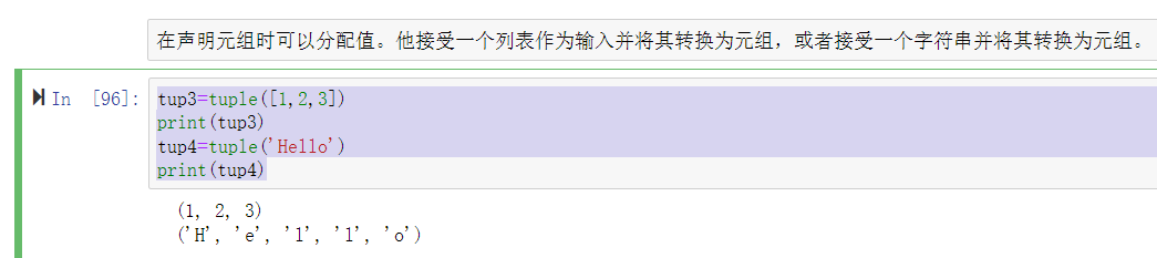 在声明元组时可以分配值。他接受一个列表作为输入并将其转换为元组,或者接受一个字符串并将其转换为元组。