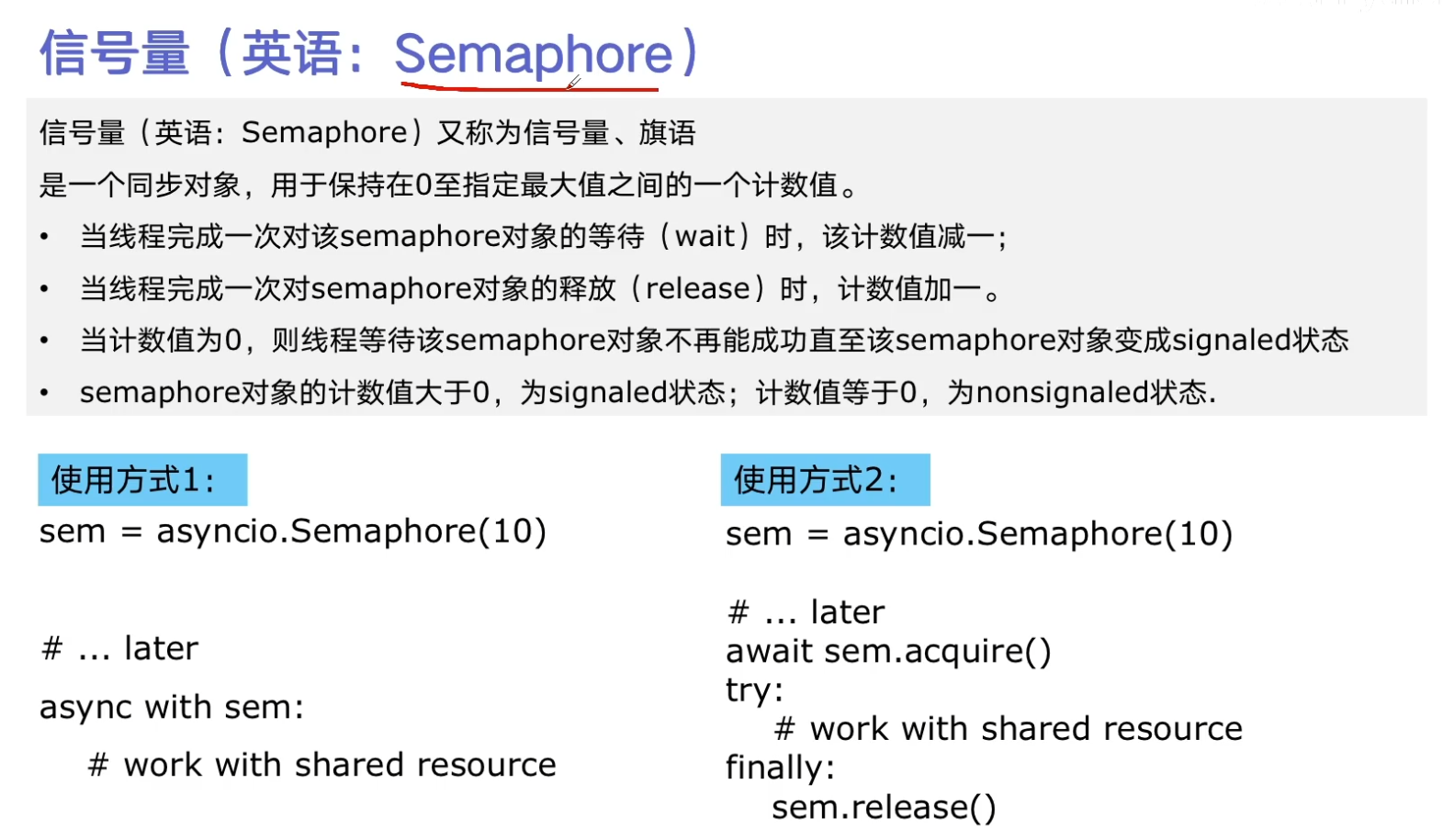4.使用Lock对资源加锁,防止冲突访问 5.使用Queue实现不同线程/进程之间的数据通信,实现生产者-消费者模式 6.使用线程池Pool/进程池Pool,简化线程/进程的任务提交、等待结束、获取结果 7.使用subprocess启动外部程序的进行,并进行输入输出交互