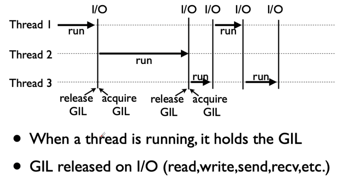 全局解释器锁(英语:Global Interpreter Lock,缩写GIL)是计算机程序设计语言解释器用于同步线程的一种机制,它使得任何时刻仅有一个线程在执行。即便在多核处理器上,使用GIL的解释器也只允许同一时间执行一个线程。  由于GIL的存在,即使电脑有多核CPU,单个时刻也只能使用1个线程,相比于并发加速的C++/JAVA所以慢。