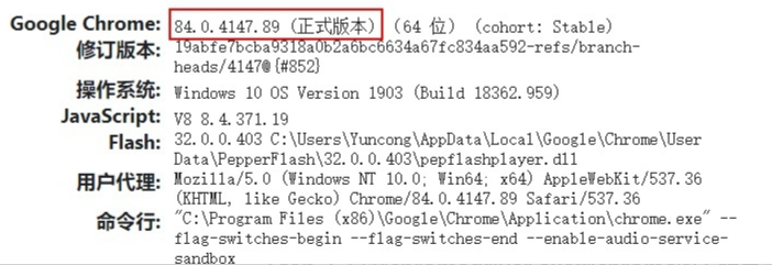 注意需要下载和chrome浏览器相同版本的driver 在Chrome浏览器地址栏输入chrome://version/ 回车后页面会显示浏览器版本和安装目录。