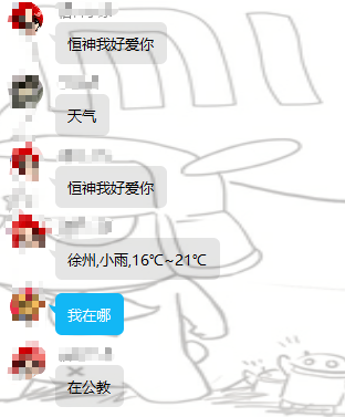 这是调用了一个天气的接口进行json解析,有人发天气就会查询我们这当地的天气发到群里