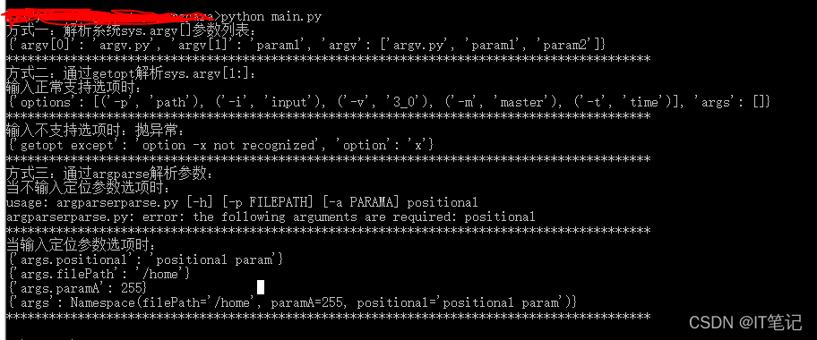 print("方式三:通过argparse解析参数:") print("当不输入定位参数选项时:") os.system("python argparserparse.py -p /home -a 255") print('***'*30) print("当输入定位参数选项时:") os.system('python argparserparse.py -p /home -a 255 "positional param"') print('***'*30)