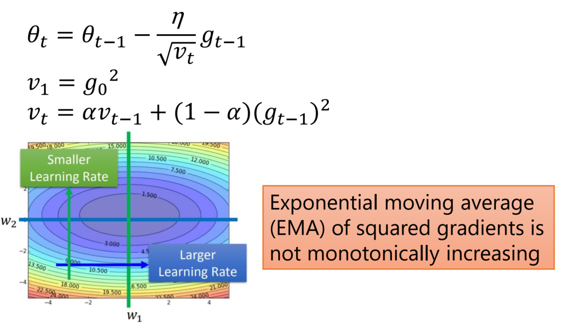 v_t=\beta _2\cdot v_{t-1}+\left( 1-\beta _2 \right) \left( g_{t-1} \right) ^2